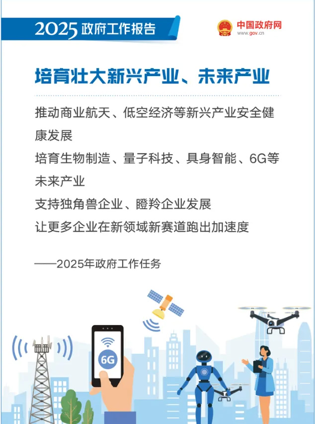 ● 建立未来产业投入增长机制,培育生物制造、量子科技、具身智能、6G等未来产业。